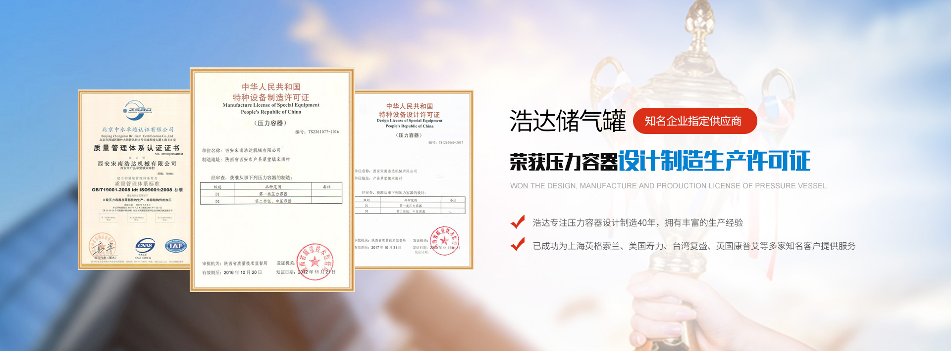 西安宋南浩達機械有限公司是陜西首批取得壓力容器制造許可證的廠家,是陜西省定點生產壓力容器的專業工廠,現有近40年的制造歷史。